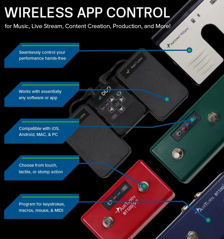 "Never miss a note on a page turn again. [AirTurn] is great for turning sheet music in the ForScore app while playing chamber music. It allows me to keep playing my violin (which requires 2 hands) and turn the page at the same time."